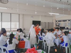 午後は、フィリピンのクリスマスや新年に欠かせない家庭料理を囲み、現地の伝統文化を学びました。この日を締めくくる交流タイムでは、日本文化を紹介するパフォーマンスや折り紙を一緒に楽しみ、さらに絆を深めるひとときとなりました。そして準備していた日本からのプレゼントを贈る場面では、心を込めて伝えた感謝の言葉も、笑顔に包まれる空間を作りました。