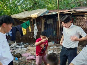 さらに、午後には現地のスラム街で教育支援を行う団体「DAREDEMO HERO」を訪れ、貧しいながらも現地で笑顔で過ごす子供達と交流を深めながら、その強烈な境遇と生活を目の当たりにし、国際支援を考えるきっかけとしました。
