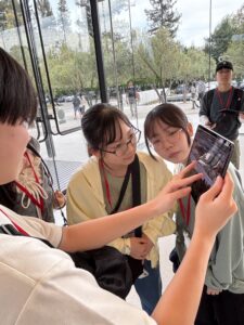 午前はAppleビジターセンターを訪問しています。ホテルやセンターでも話しかけられることが増えできました。緊張しながらもみんな頑張って応えていました!