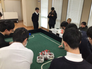 物理部には高校生16名と中学生32名が所属しています。サッカーロボットを制作し、全国大会にも出場しています。※部員数は2019年6月1日現在。