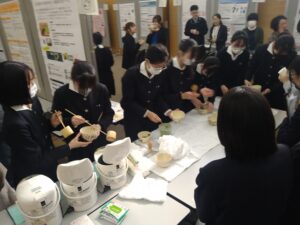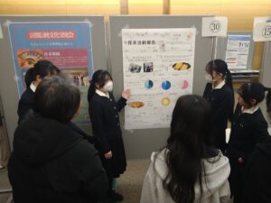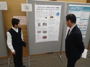 今年は、大学生や高校生など33組がエントリーし、会場には様々な活動を報告するポスターが掲出されました。本校からは、JCA料理探究チーム、カブトムシ探究チーム、動画編集チームの3組がポスター発表に参加しました。また、休憩時間を兼ねたカフェスタイル交流会では、JCAの部員が抹茶を提供しました。