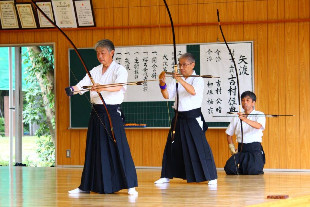 矢渡しは射手を弓道部2期生の吉村佳典さん、介添を吉村公晴(6)、柳垣柚衣(5)に務めていただきました。素晴らしい矢渡しをありがとうございました。