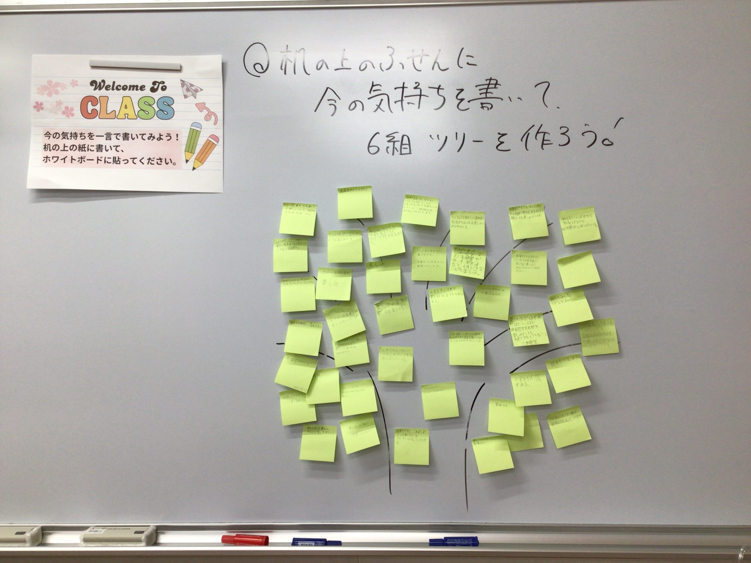 新入生に、”三田学園に入学してきた今の気持ちを書こう”と、教室で配布された付箋に現在の気持ちを書いてもらいました。