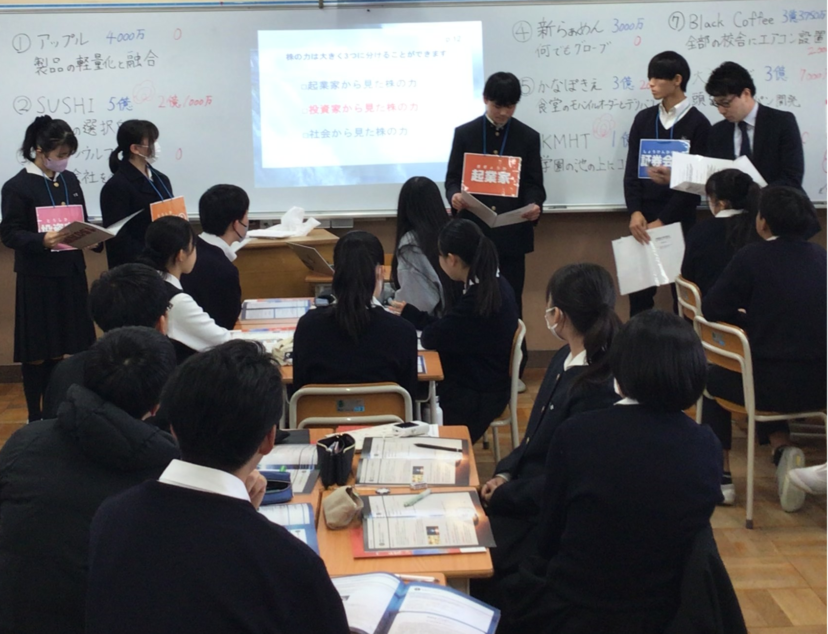 モルガン・スタンレー証券会社の方をお招きして「株の力」について授業をしてもらいました。