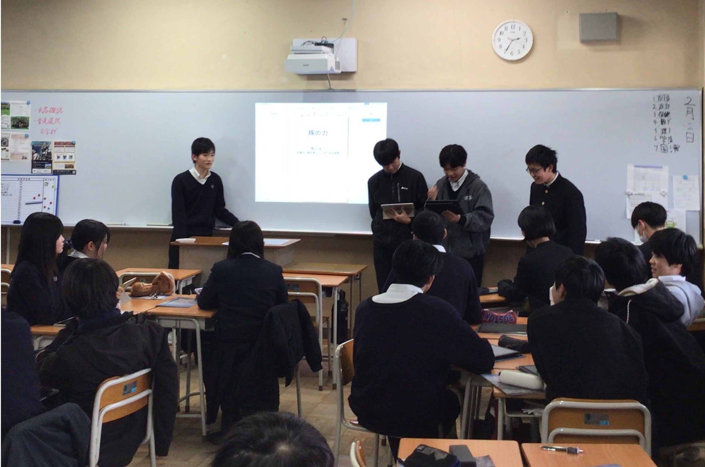 一昨日の学活は、12月11日から学んでいた「株の力」の広告発表会です。