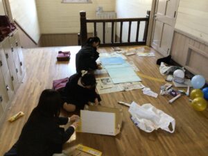 今日1日かけて形作っていくうちに、いろんなアイディアも出てきて、どのクラスもとても楽しい教室に様変わりしていきました。