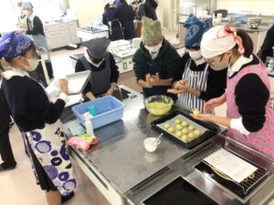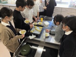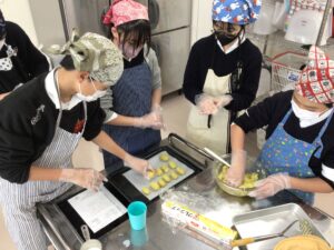 収穫したサツマイモを使って、家庭科の調理実習でスイートポテトを作りました。