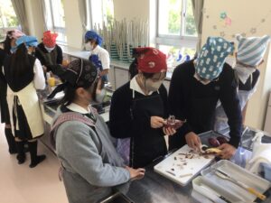 中学生になって初めての調理実習だったので、まずは包丁の使い方、自分やクラスメイトが怪我をしないために気をつけるべきことについて授業で考えてから実習に臨みました。