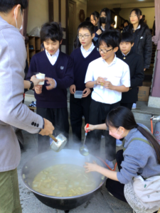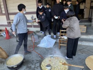 スイートポテト作りでは使いきれなかったサツマイモを最後まで味わってもらうため、教員が炊き出しをして生徒に振る舞う「芋煮会」を開催しました!