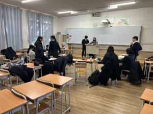 午後は、中学1年生は「My favorite thing」についてのスピーチ、中学2年生は自分たちのオリジナルストーリーのスキット(劇)に挑戦しました。短い期間で与えられた時間を有効活用し、個性豊かな発表でした。