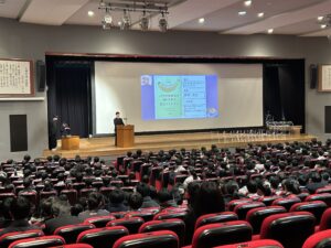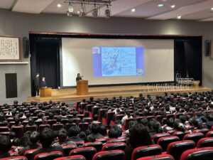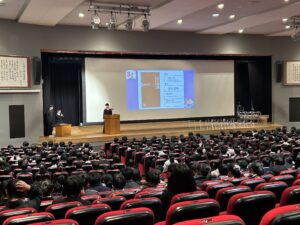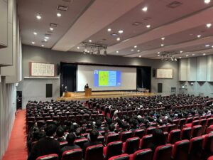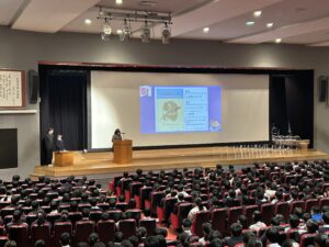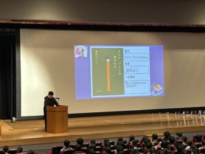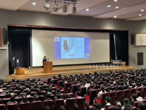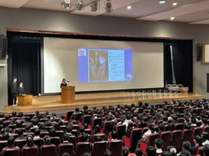 中1も観客として加わり、約500人の前での発表でした。舞台裏では緊張している様子でしたが、ステージ上では堂々としていました。