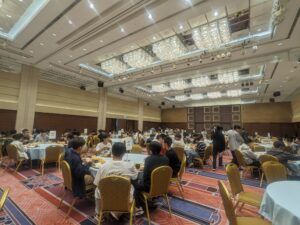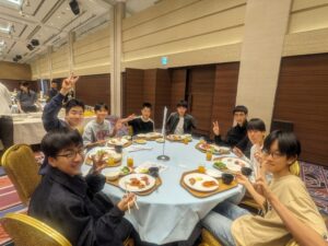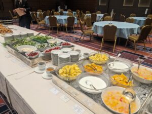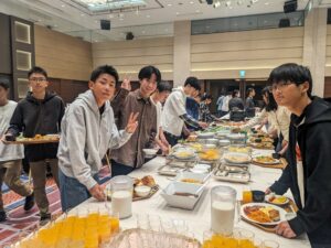 ビュッフェ式の朝食を取り、本日の企業研修に向けて準備を進めています。
