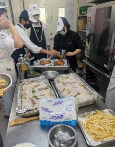 午前中はクリスマスバンケット用にローストチキンを作りました。