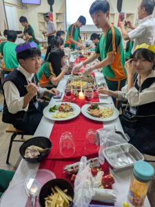 台湾では家庭で料理をする習慣があまりなく、朝ごはんも買ってきて、学校で食べる生徒が多いようです。本校生徒も、フルーツや飲み物などを持ってきて学校で食べていました。