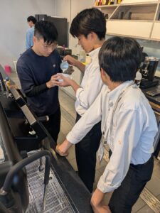 午後からは2時間の休憩があり、ラテアートの大会でチャンピオンになられた経験のある先生に、カフェラテを入れて頂きました。