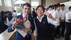 3月に現高校3年生の2名が総領事を表敬訪問し、そのご縁で実現したものです。