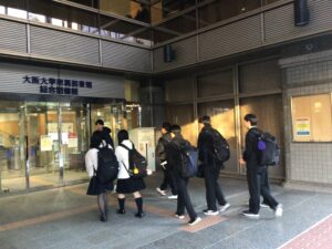 12月15日(月)、高校1・2年生の希望者が、大阪大学を訪問し、校卒業生および山本ゼミ生の引率のもと、キャンパスツアーと山本ゼミ見学に参加しました。この企画は、昨年度から実施しているものです。