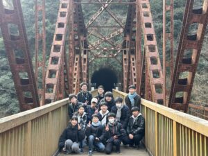 武田尾駅から生瀬駅まで、福知山線の鉄道遺構をカメラに収めたり、先輩からの解説を聞いたりしながら、楽しく歩きました。