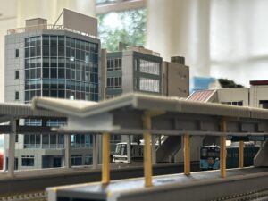 今週は立花駅のジオラマを紹介いたします。現実の区画を忠実に、適度にデフォルメを入れながら制作しました。文化祭でもぜひご覧ください。