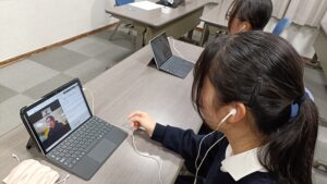 また、オンライン交流の最後には、中学家庭科教室で同時間に実施していた韓国文化体験教室より、