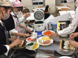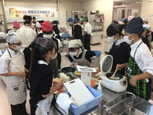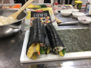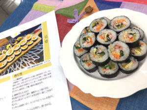 韓国料理キンパを作り、試食するプログラムで、約一日で定員に達するほどの人気ぶりでした。