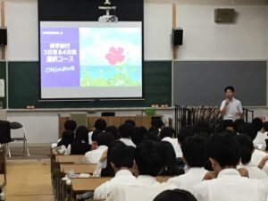 HRでは修学旅行の行動班決めと石垣島プランの選択プログラム説明会を行いました。