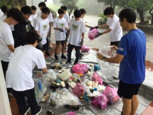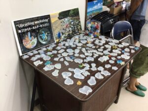 ワークショップでは海洋ゴミの現状を知るパート、海洋ゴミを分別してどのようなものが漂着しているかを知るパート、プラスチックゴミを再利用してアクセサリーを作るパートに分かれて活動しました。