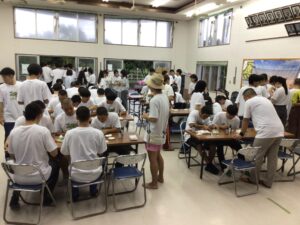 午前中は縄文企画さんによるビーチクリーニングの体験を通して、海洋汚染を考える機会を持つ予定でしたが、屋内でのワークショップに変更となりました。