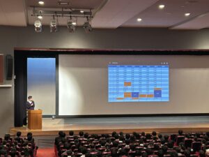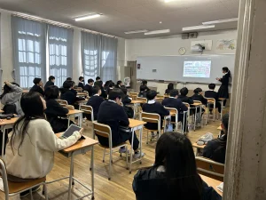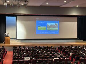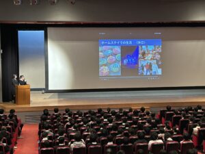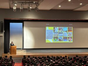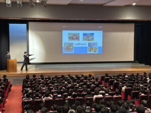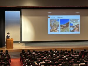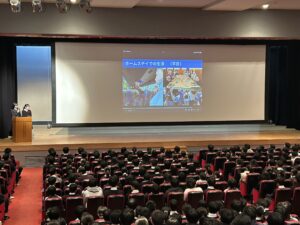 発表では、参加した動機をはじめ、ホームステイの様子や学校生活、日々のスケジュールなど、自身の経験や学びについて具体的に語ってくれました。先輩たちのリアルな体験談は、中学生にとって「自分の世界から一歩踏み出す勇気」を後押しする貴重な機会となりました。